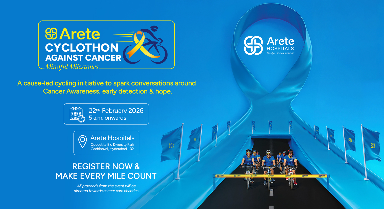 In observance of World Cancer Day, Arete Hospitals officially launched Cyclothon – Edition 1, a community-focused initiative designed to raise awareness about cancer prevention, early detection, and healthy living. All proceeds from the Cyclothon will be directed towards cancer care charity initiatives, supporting awareness, screening, and patient support programs.